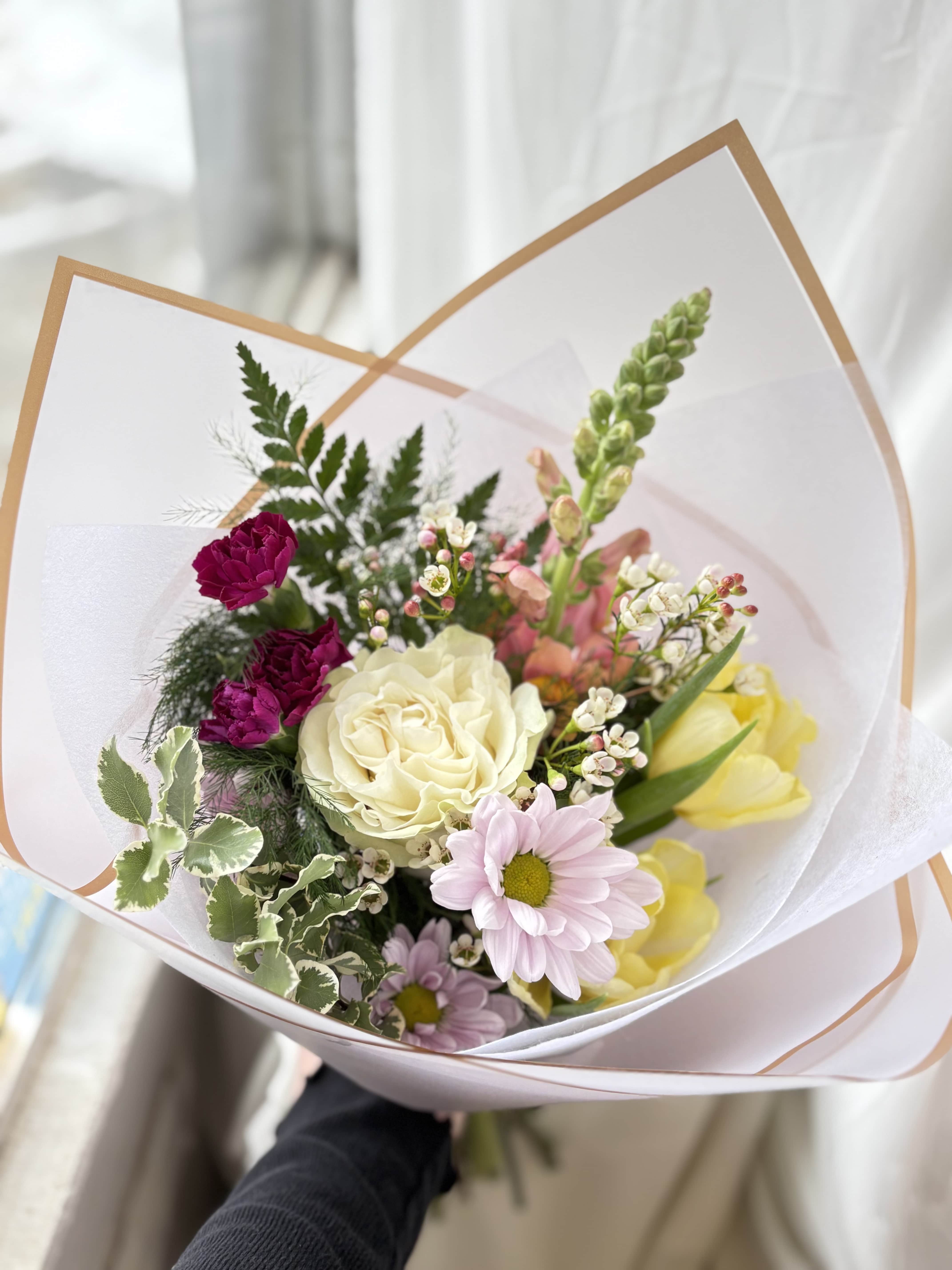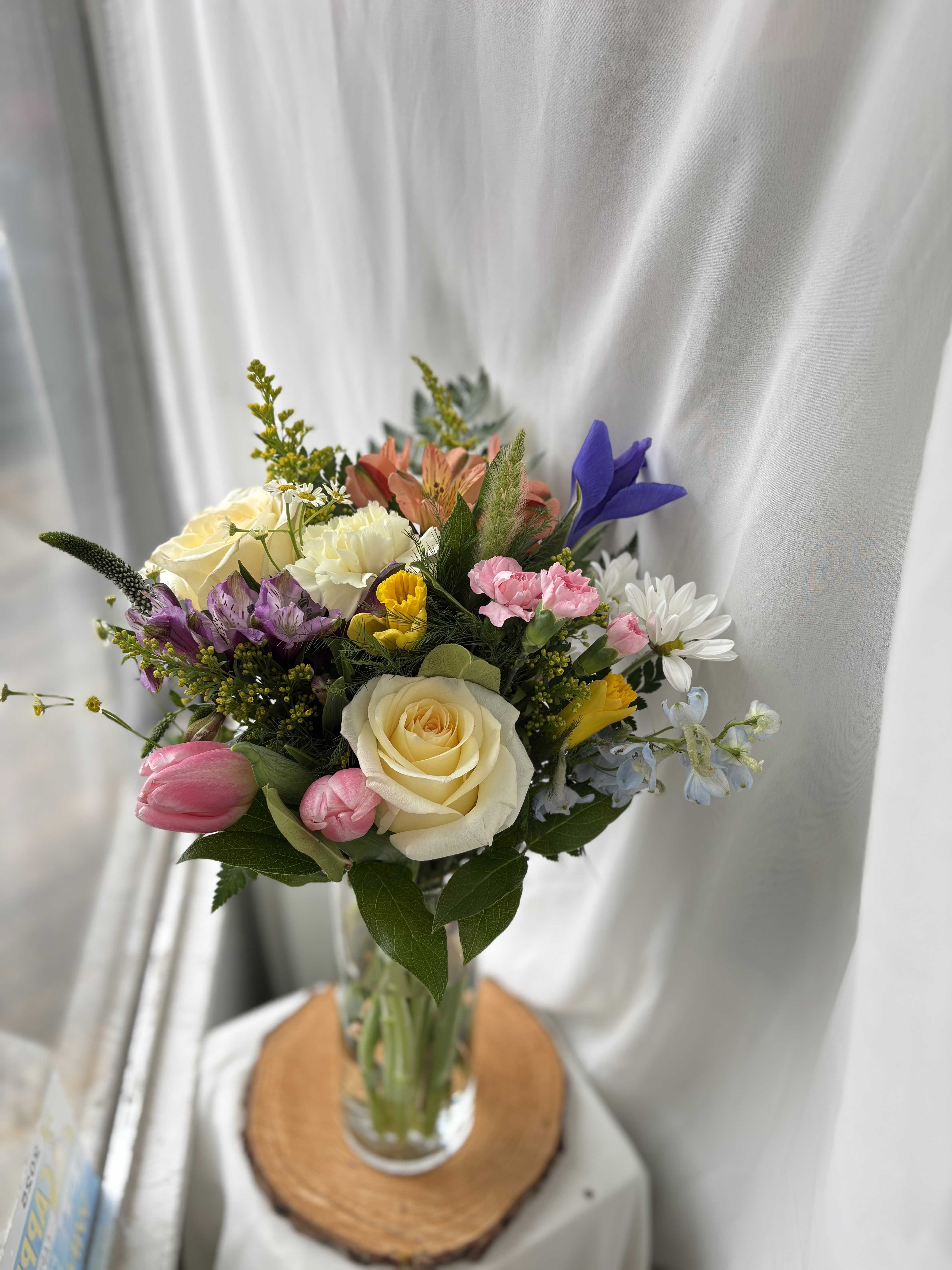 We offer custom flower delivery in Pembroke, using fresh, seasonal blooms arranged with care. Whether you're sending flowers for a birthday, Valentine's Day, or just because, we'll design something one of a kind to match the moment. Just tell us the colors, style, or feeling you want to share, and we'll bring your vision to life. You can also add a handwritten card or small gift to make it even more personal. Roses, tulips, ranunculus, and other seasonal favorites may vary, but we always keep the overall look and value of your arrangement just right.